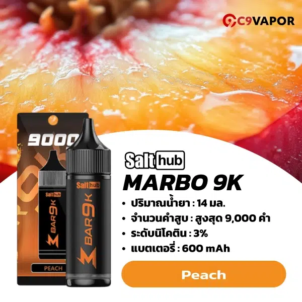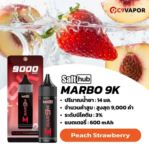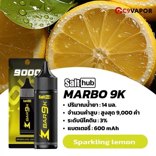 Marbo Bar 9000 Puffs Disposable Pod เป็นพอตใช้แล้วทิ้งจากแบรนด์ Salthub ที่มาพร้อมจำนวนคำสูบสูงถึง 9000 คำ เหมาะกับสายสูบหนักที่ไม่อยากเปลี่ยนเครื่องบ่อย ตัวเครื่องถูกออกแบบอย่างดี ให้ความสะดวกสบายและประสิทธิภาพสูง